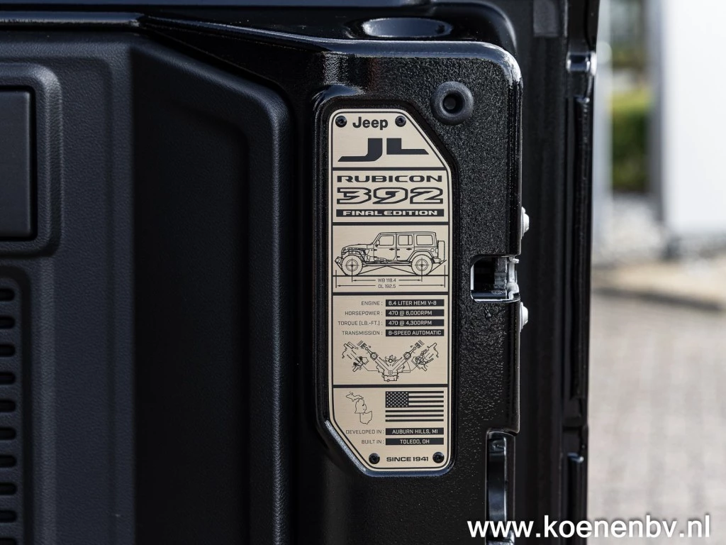 Wrangler...... V8...... Final Edition.... , de meest begeerlijke originele Wrangler die de fabriekspoorten verlaat. Bijna 480pk, automaat, 4x4. 17” Beadlock wheels met 35” B.F. Goodrich banden. Geniet van open rijden dankzij het My Sky dak. Met 1 druk op de knop te openen of te sluiten.