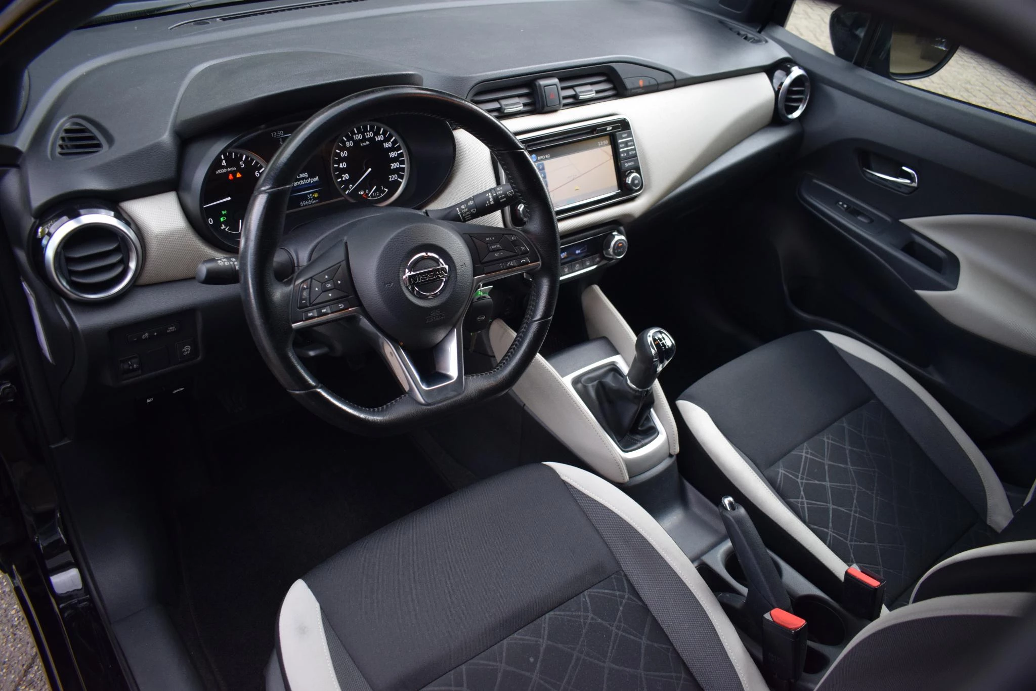 Van buiten gezien zou u niet denken dat-ie van binnen zo ruim is. En zo zit deze Nissan Micra vol met nog veel meer aangename verrassingen. Dat begint al bij de pomp. De aandrijving van deze Nissan wordt verzorgd door een driecilinder benzinemotor en een handgeschakelde vijfversnellingsbak. Tot de uitrusting van deze Nissan behoren ook 16 inch lichtmetalen velgen, LED-dagrijverlichting, extra getint glas, in delen neerklapbare achterbank en snelheidsafhankelijke stuurbekrachtiging.